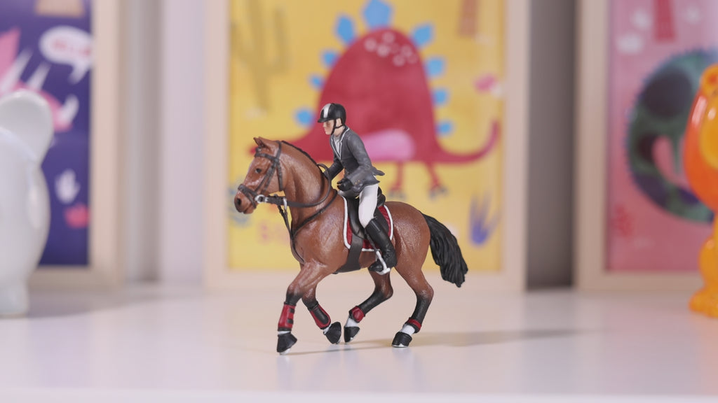 The Papo show jumping horse and rider set offers striking realism: detailed harness, dynamic pose, and sporty finish. An essential for recreating eventing or show jumping scenes and enriching any equestrian-inspired horse collection .